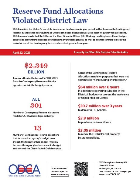 Former three-term D.C. Councilmember Kathleen (Kathy) Patterson became D.C. Auditor on December 15, 2014, after being nominated and confirmed unanimously by the D.C. Council. She was subsequently nominated and confirmed unanimously by the Council for a six-year term on February 7, 2023.